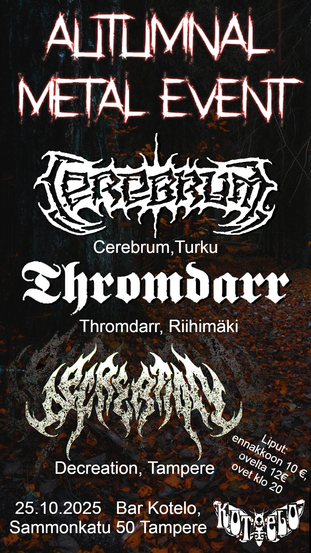 Old School Metal Massacre part 2, jatkaa siitä mihin edelliset jäljet jäivät! Eli illan löylyttelyt aloittaa turkulainen melodinen proge death metal -yhtye Cerebrum ja illan, veripisaroita ohimoille nostattavan, musiikillisen tarjonnan päättää Riihimäen oma ylpeys Thromdarr.Tervetuloa nauttimaan raskaammasta metallimusiikista, joka lämmittää synkemmänkin sielun juuri sopivasti hyiseen tammikuiseen lauantai-iltaan.Bulldog bar, Eteläinen asemakatu 2, Riihimäki